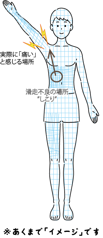 動きを何度繰り返してもそれは表層の筋肉を動かしているだけで痛み解消には繋がらないからです。